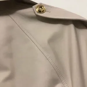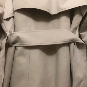 This elegant trench coat with utilitarian buckles and buttons is a classic wardrobe basic.