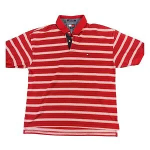 Tommy Hilfiger Mens XXL Red White Striped Short Sleeve Cotton Polo Shirt