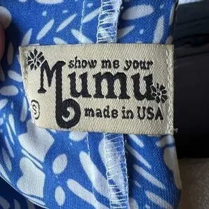 SHOW ME YOUR MUMU royal blue & white floral spaghetti strap mini dress size S