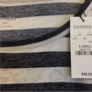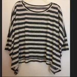 Express lightweight burnout oversized black and white striped batwing top. Super cute and comfortable. can fit other sizes due to oversized fit. Says xxs on top but tag says xs bought like that from EXPRES store. Great for summer as a coverup. Would look great with jeans and boots.