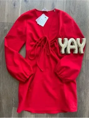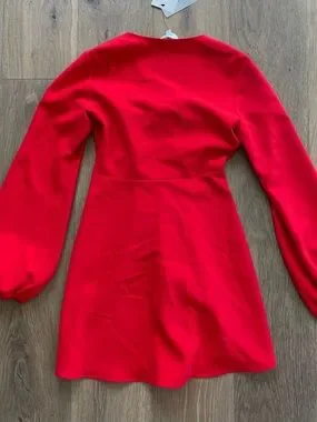A.L.C. Leslie Dress - Red. Flattering mini dress with long balloon sleeves and a stylish keyhole front. Soft drape and clean lines create an effortless, feminine look. Perfect for evening events and special occasions. Pair with heels or sandals for a polished outfit.