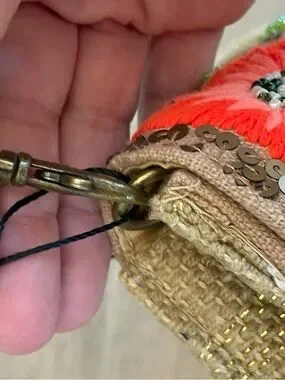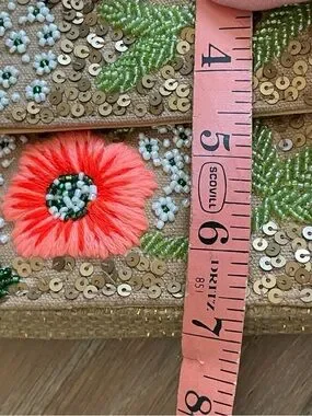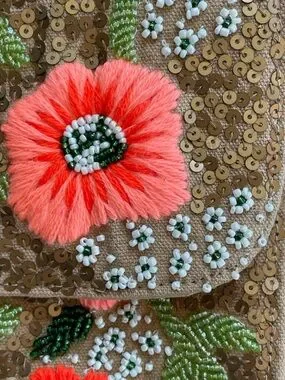 America & Beyond Floral Sequin Crossbody Bag in Coral and Gold