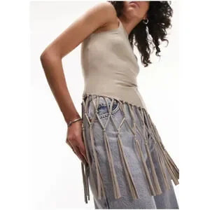 New TOPSHOP NORDSTROM Women's Stone Macrame Style Tank Top Size 8-10