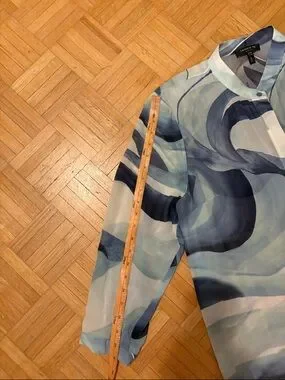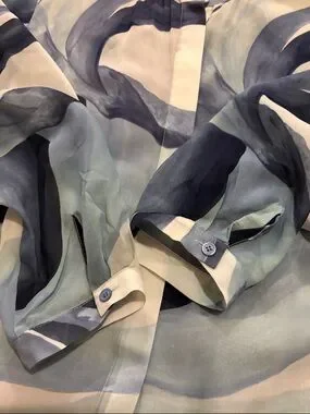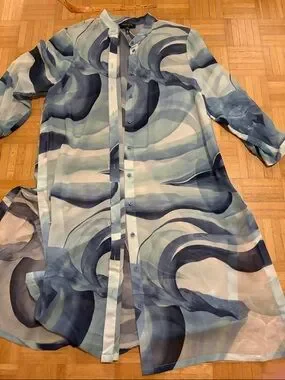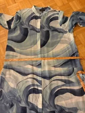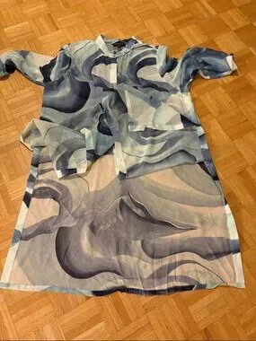 Float through your day in this light blue wave-print shirt dress. Soft blue tones create a calming, modern pattern. Designed with a relaxed fit and button-front for easy wear. Ideal for casual outings or layered looks. NWOT. Please check all photos, No return if a buyer has any issues after receiving (delicate )