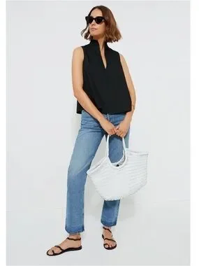 Effortless, minimal, and endlessly versatile, the Black Celeste Top is a refined staple designed for everyday ease. Crafted in crisp cotton, this sleeveless silhouette features a flattering notched V-neckline and a softly swingy shape that drapes beautifully without clinging.