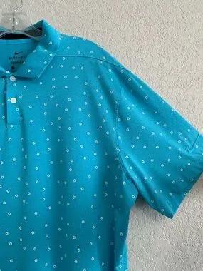 Nike Golf Shirt Polo Mens L Performance Dri-Fit Floral All Over Print AOP Preppy Blue