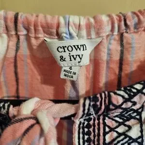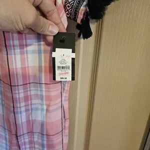 NWT Crown & Ivy Pink And White Checkered Dress With Navy Blue Tassel Decoration