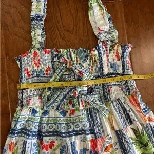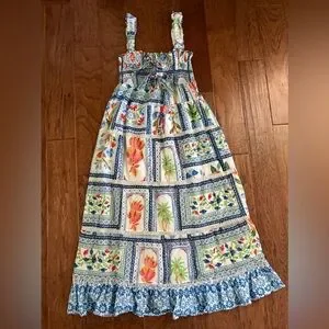 FARM Rio Tropical Tiles Smocked Maxi Dress Boho Floral Size M