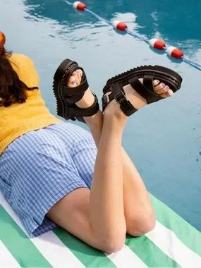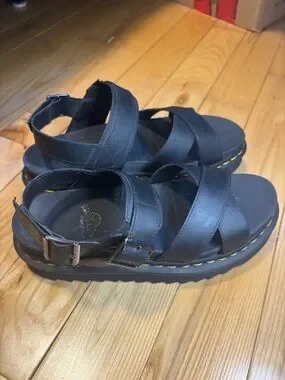 Voss II Dr. Martens Cross Strap Sandals Women’s Docs Black Leather