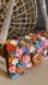 • Color: Brown multi with floral appliqué