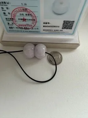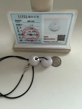 Authentic Icy Jade Pendant necklace with two round lavender jadeite beads. Smooth polished surface. Subtle translucent lilac tones. Simple, minimalist style.