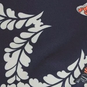 A bowed keyhole neckline makes a sweet start to a long, lithe dress, showcasing a graceful blossom-and-butterfly print inspired by the gardens of Kyoto.