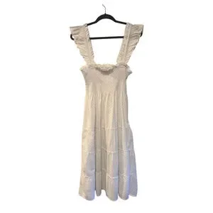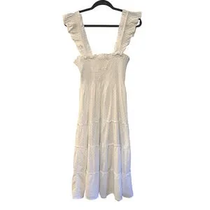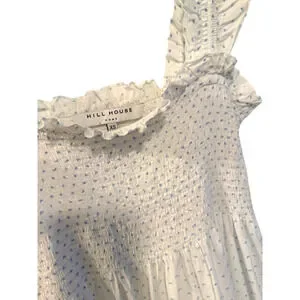 Hill House Ellie Nap Dress $178 Blue Polka Dot Cottagecore Smocked Midi White XS
