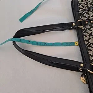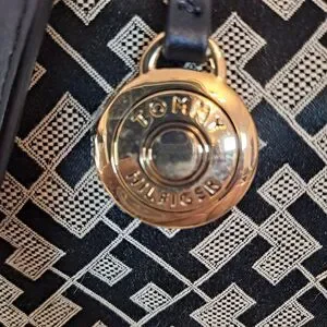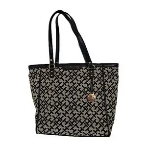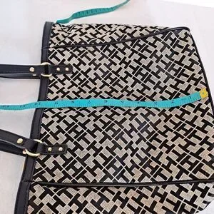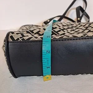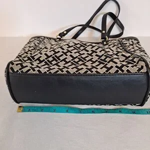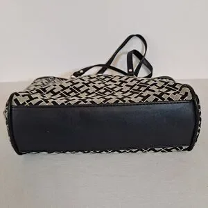 Tommy Hilfiger Shopper Tote Bag Signature TH Pattern Black 9-1/2"×10"×2-1/2"