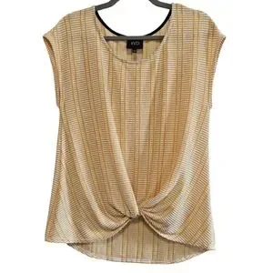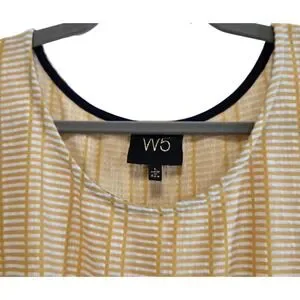 W5 Women's Yellow White Striped Twist Front Knit Top Sleeveless Blouse Large