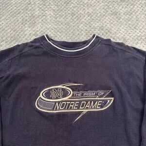 VTG 90's Notre Dame Fighting Irish Navy Faded Crewneck Sweatshirt Sz L