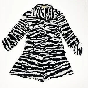 Michael Kors Animal Print Zebra White Black Roll Tab Sleeve Short Romper Women L