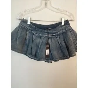 The NWT Almost Famous Mini Pleated Skort in size S is a trendy and feminine piece perfect for a Y2K festival vibe. The skirt features a pleated design that adds a touch of bohemian flair, making it a stylish choice for women looking to add a unique twist to their wardrobe. The skirt's short length and blue color make it versatile for various outfits and occasions, while the brand's reputation for quality ensures a durable and fashionable addition to any closet.