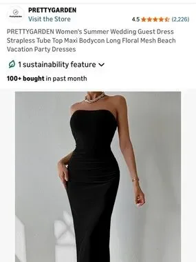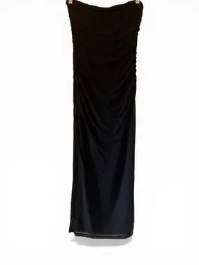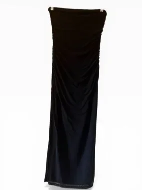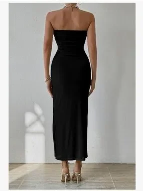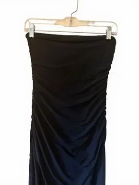 A fitted strapless black dress that sculpts the silhouette. Smooth, minimalist design perfect for evenings and special events. Comfortable stretch fabric for a flattering fit. Pair with heels and statement jewelry to complete the look.