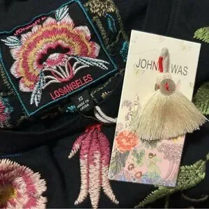 JOHNNY WAS NWT Boho Floral Embroidered Relaxed Knit Midi Dress