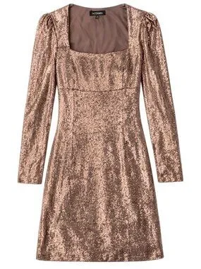 Intermix Hilary brown Bronze Sequin Mini Dress Long Sleeve Square Neck Size 8