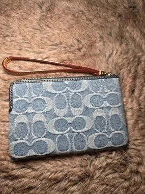 Coach Signature Denim Wristlet with Embroidery
