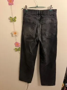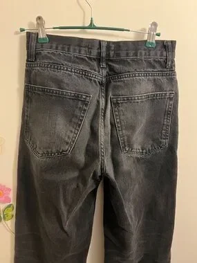 Straight leg jeans from ZARA. Button-fly closure. Faded black wash with subtle whiskering. Classic five-pocket styling. Clean, versatile look for everyday wear.