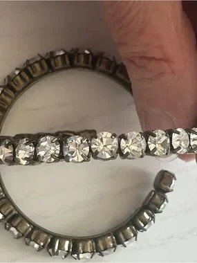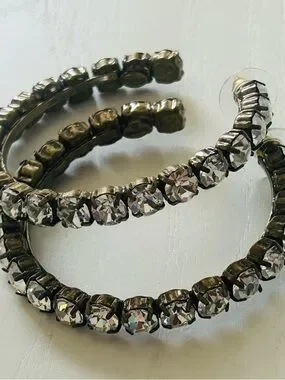 Elegant antique gold-tone hoop earrings with faceted crystal accents. Comfortable post backs for everyday wear. Adds subtle sparkle and warmth to any outfit. Antique gold color complements both casual and dressy looks.
