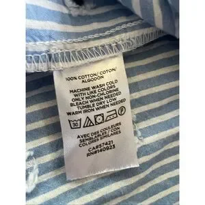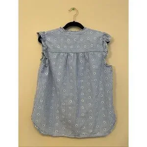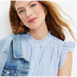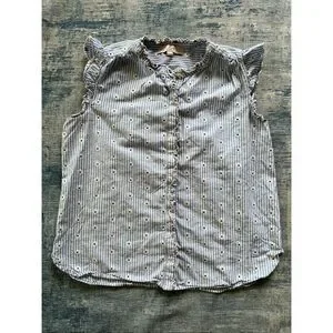 Loft Blue White Stripe Daisy Ruffle Button Front Top Women's Medium