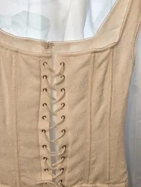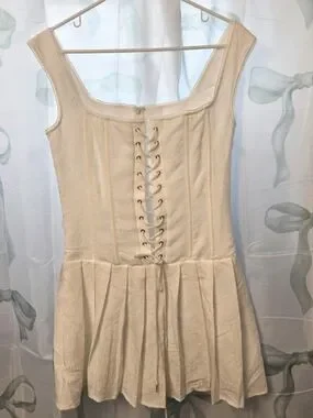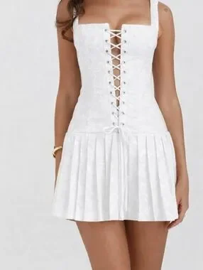 NWOT Dreamy White Lace-Up Corset Mini Dress - Floral Jacquard Size Large