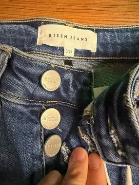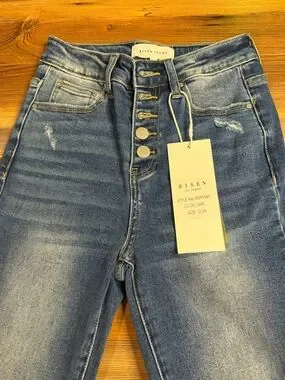 NWT Risen High Rise Button Fly Cropped Flare Jeans Stretchy Dark Wash Raw Hem