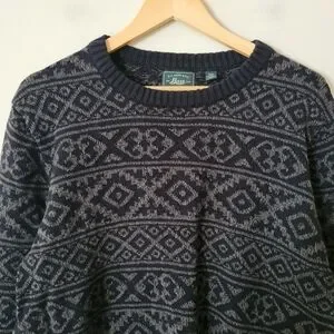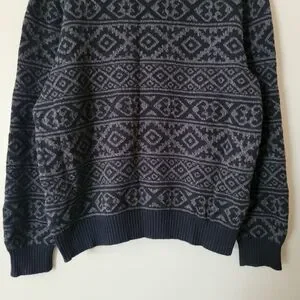 Vinage Knit Crewneck Geometric Grandpa Sweater Black Grey Grunge Retro Size Larg