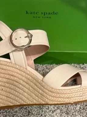 kate spade Cream Leather Cross-Strap Espadrille Wedges