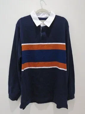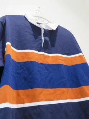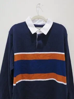 Tags: day night casual street streetwear classic everyday essential comfy comfort preppy j.crew hugo boss lacoste tommy hilfiger fred perry vineyard vines armani perry ellis abercrombie 90s 00s rugby tennis vintage sport sporty athletic ralph lauren collegiate rugby shirt, striped rugby top, preppy style, collegiate style, varsity aesthetic, retro sporty, classic menswear, casual streetwear, heritage style, Americana style, navy blue, colorblock stripes, orange stripe, white collar, multicolor stripe, contrast collar, long sleeve top, cotton knit, relaxed fit, everyday casual, lightweight layer, weekend casual, fall layering, spring casual, sporty casual, timeless classic, Y2K prep, 90s sporty, vintage‑inspired, normcore, minimalist casual