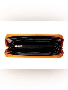 Zip closure secures the main compartment, central zipped compartment for coins