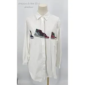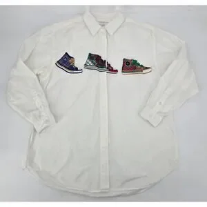 Preston & York Vintage Upcycled Embroidered Sneakers Button Down Shirt - Medium