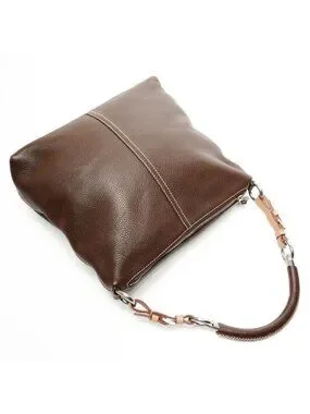 This is an authentic Prada Shoulder Bag Leather in a rich brown color. The bag features a structured, rectangular silhouette with a zippered closure and adjustable leather shoulder strap.