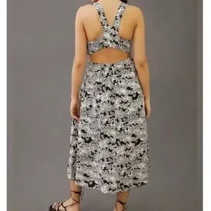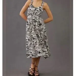 Anthropologie Black & White Floral Linen Midi Dress – Size M – NWT