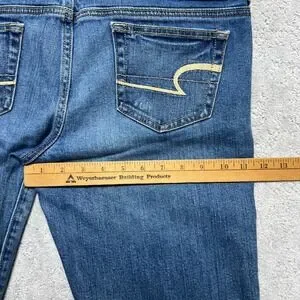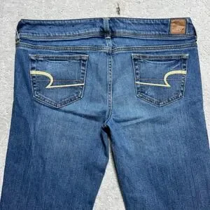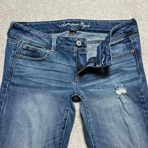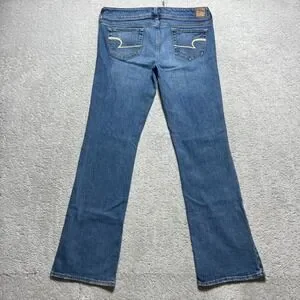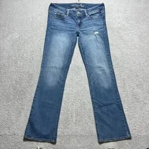 Keywords: Y2K, Indie Sleaze, Distressed, Bootcut, Low Rise, Stretch Denim, Boho, Casual, Everyday, Classic, Tall, Long Inseam, American Eagle Jeans, Slim Boot, Medium Wash