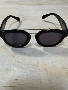 Vtg CELINE Preppy Pretty Double Bridge Sunglasses Black Gold Italy Purple Grad
