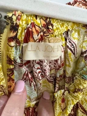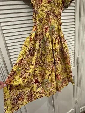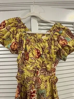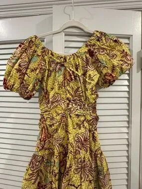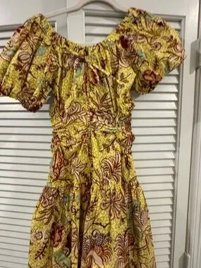 Ulla Johnson Yellow Floral Midi Dress with Puff Sleeves