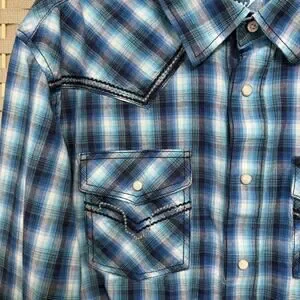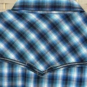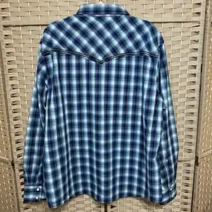 Wrangler Rock 47 Men’s Western Pearl Snap Shirt XXL Blue Plaid Long Sleeve EUC