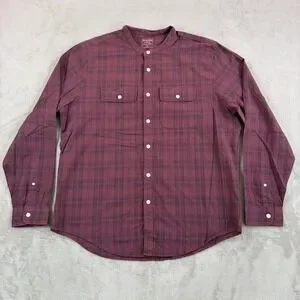 Abercrombie & Fitch Blade Mandarin Collar Shirt in Burgundy Plaid Men 2XL Preppy