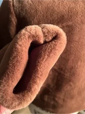 Faux fur open front oversized, collar pockets, warm espresso, brown color winter autumn the jacket has lightning, fun soft statement piece New York hippie western cowgirl, festivals concerts