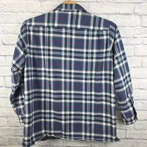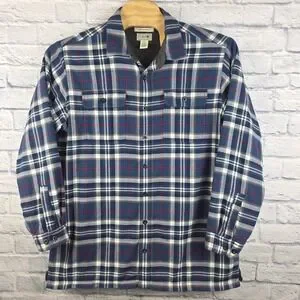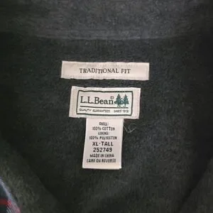 LL Bean Men Blue Plaid Button Fleece Lined Flannel Shirt Jacket Size XLT TALL