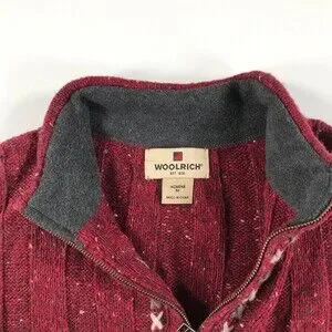 Woolrich Sweater Womens Medium Heather Red Gray Quarter Zip Nordic Fair Isle