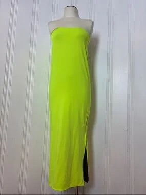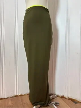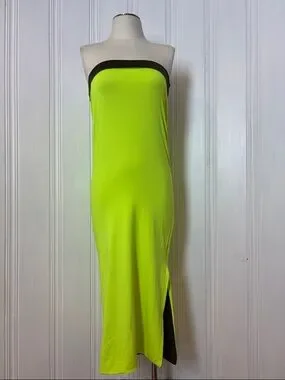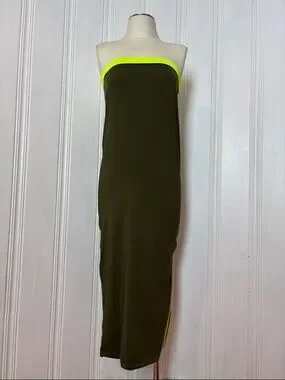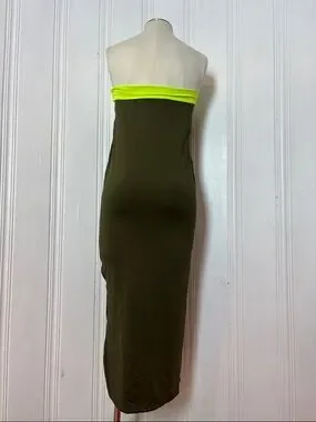 Reversible Khaki & Neon Tube Dress / Maxi Skirt – Multi-Way Convertible Piece