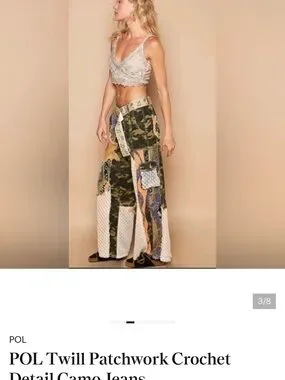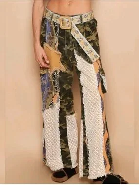 POL Twill Patchwork Crochet Detail Camo Jeans