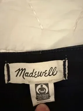 Madewell label on a dark black waistband. Clean stitched logo tag. Simple, versatile finish.