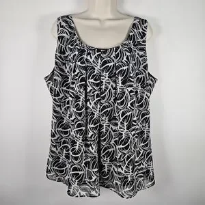 Spense Women's Sleeveless Black And White Pleated Top With Overlay Size …